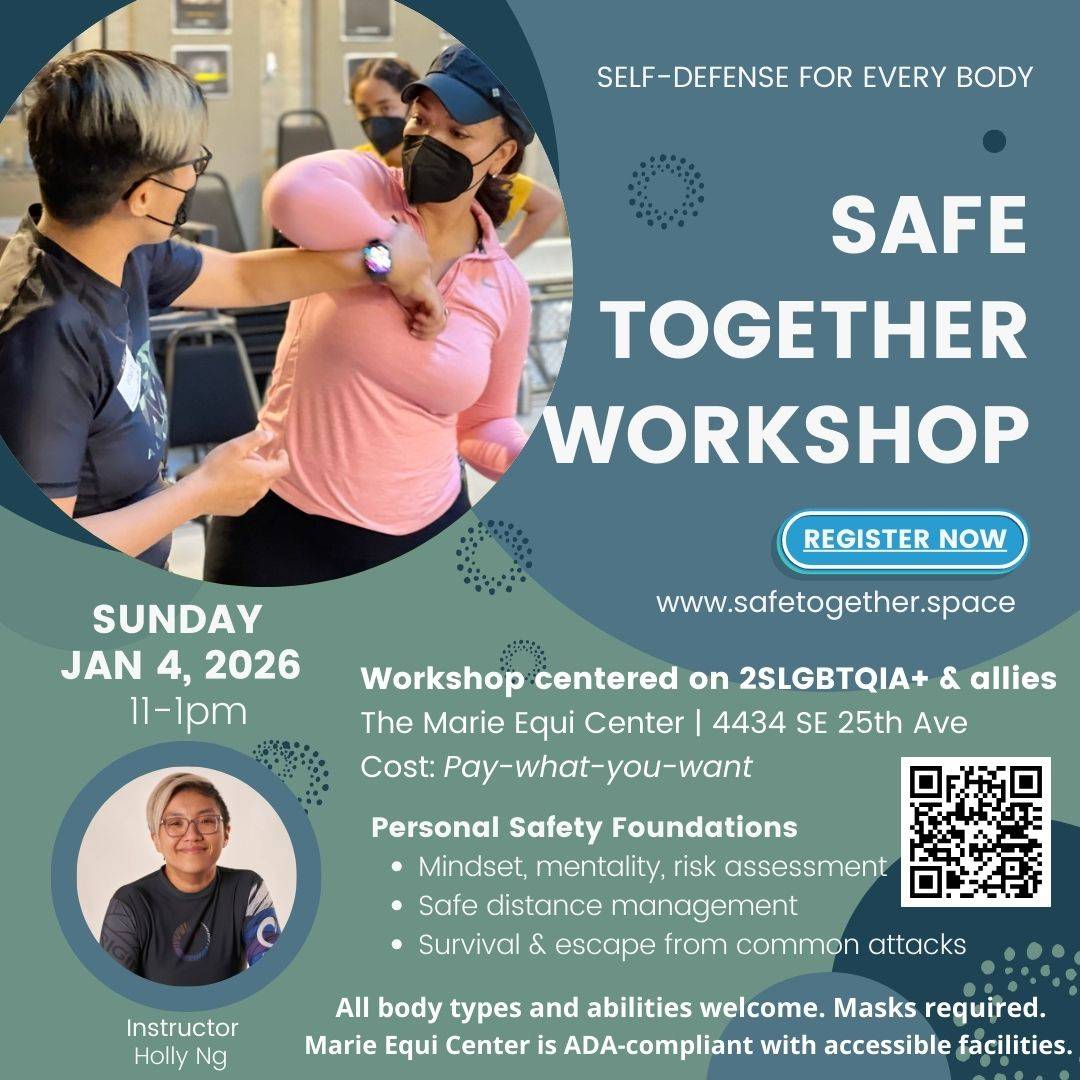 Spend two hours in a safe and inclusive environment learning how to make effective self-defense techniques work naturally with your body. All bodies and all orientations are welcomed, and no prior skill or experience is required. This workshop is centered on the 2SLGBTQIA+ community; allies and friends are also welcomed.
