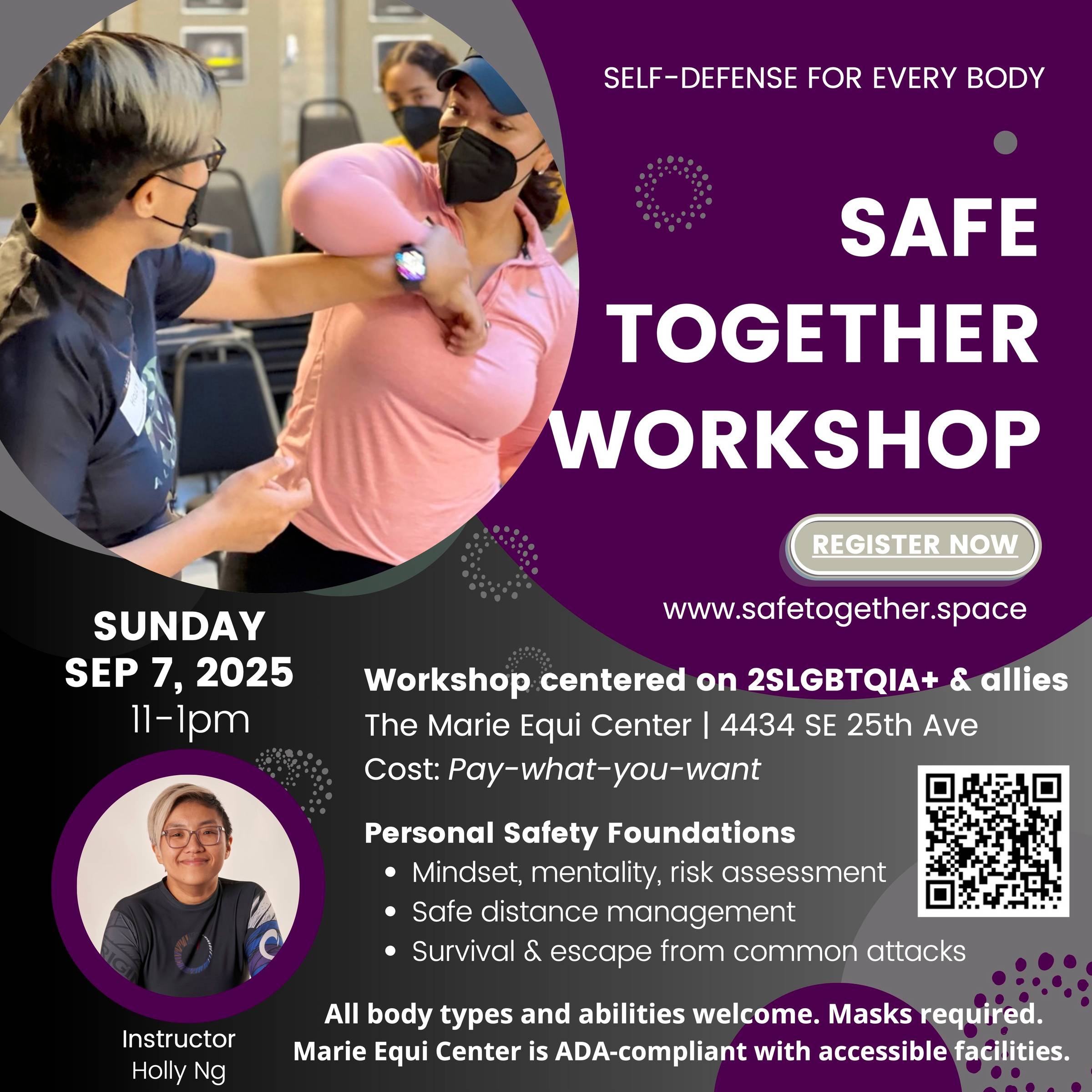 Spend two hours in a safe and inclusive environment learning how to make effective self-defense techniques work naturally with your body. All bodies and all orientations are welcomed, and no prior skill or experience is required. This workshop is centered on the 2SLGBTQIA+ community; allies and friends are also welcomed.